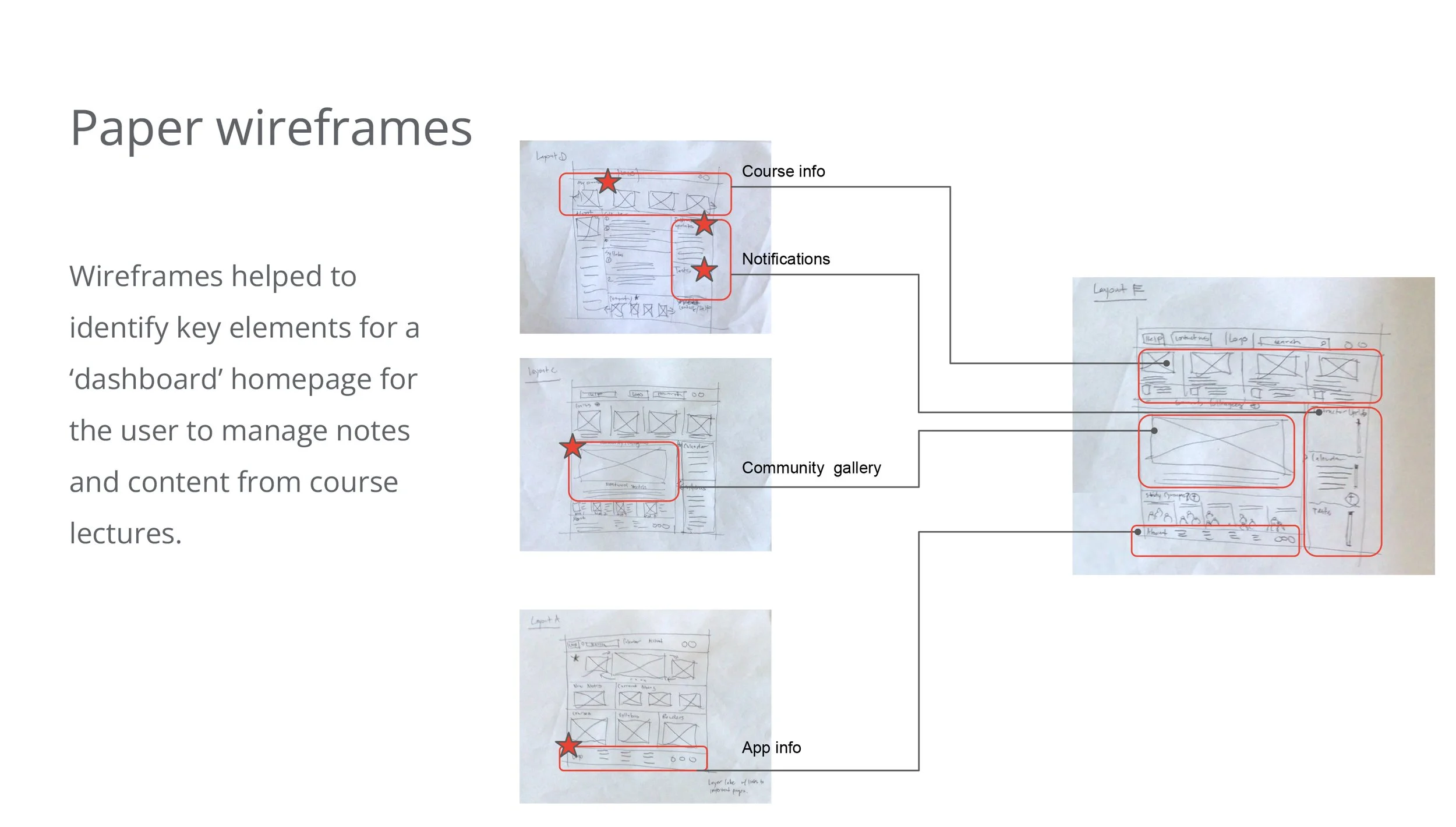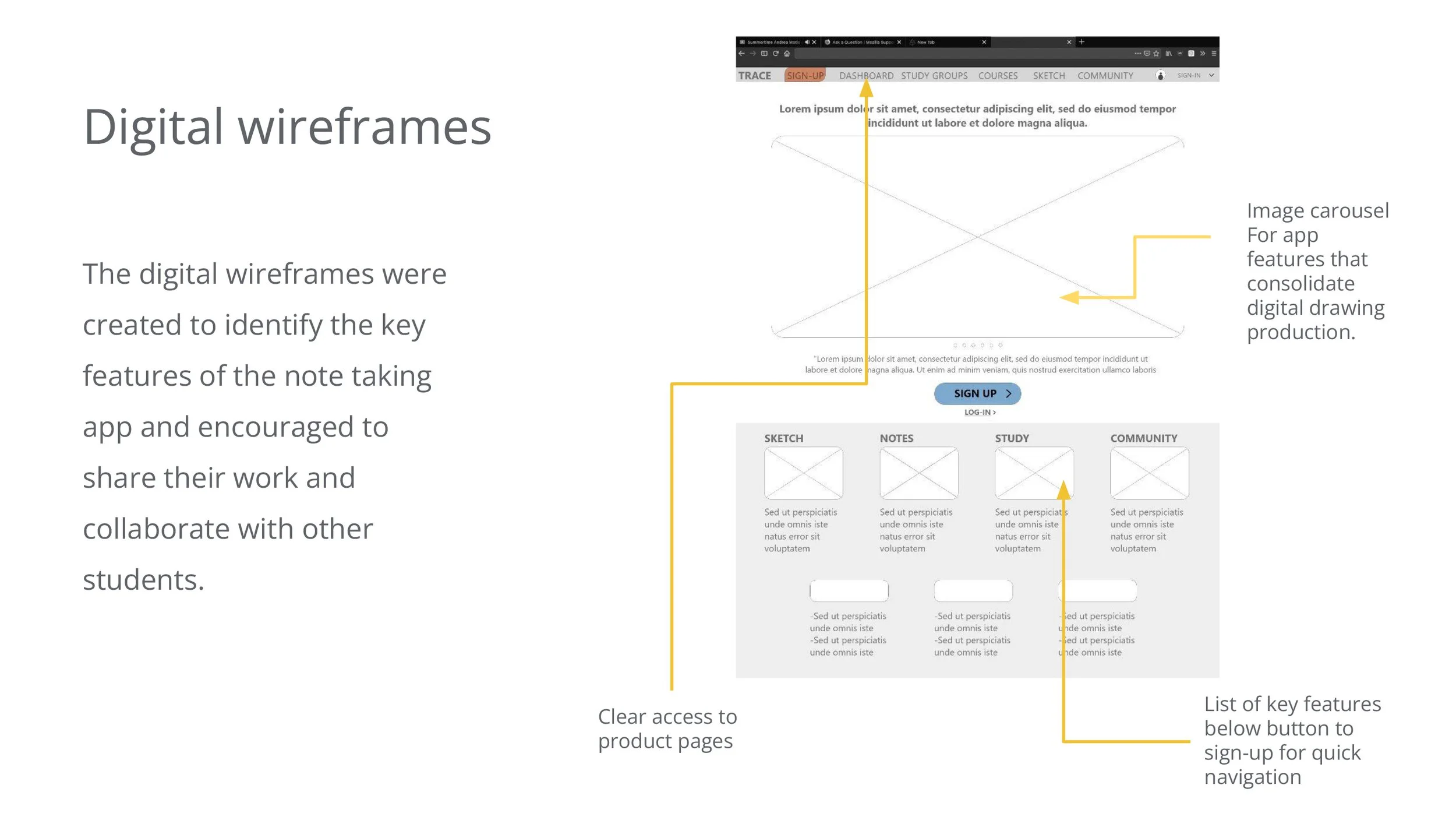 Initial wireframes were developed from initial sitemap layouts. Users were asked to sign-up for the app, add courses, and create a sketch.