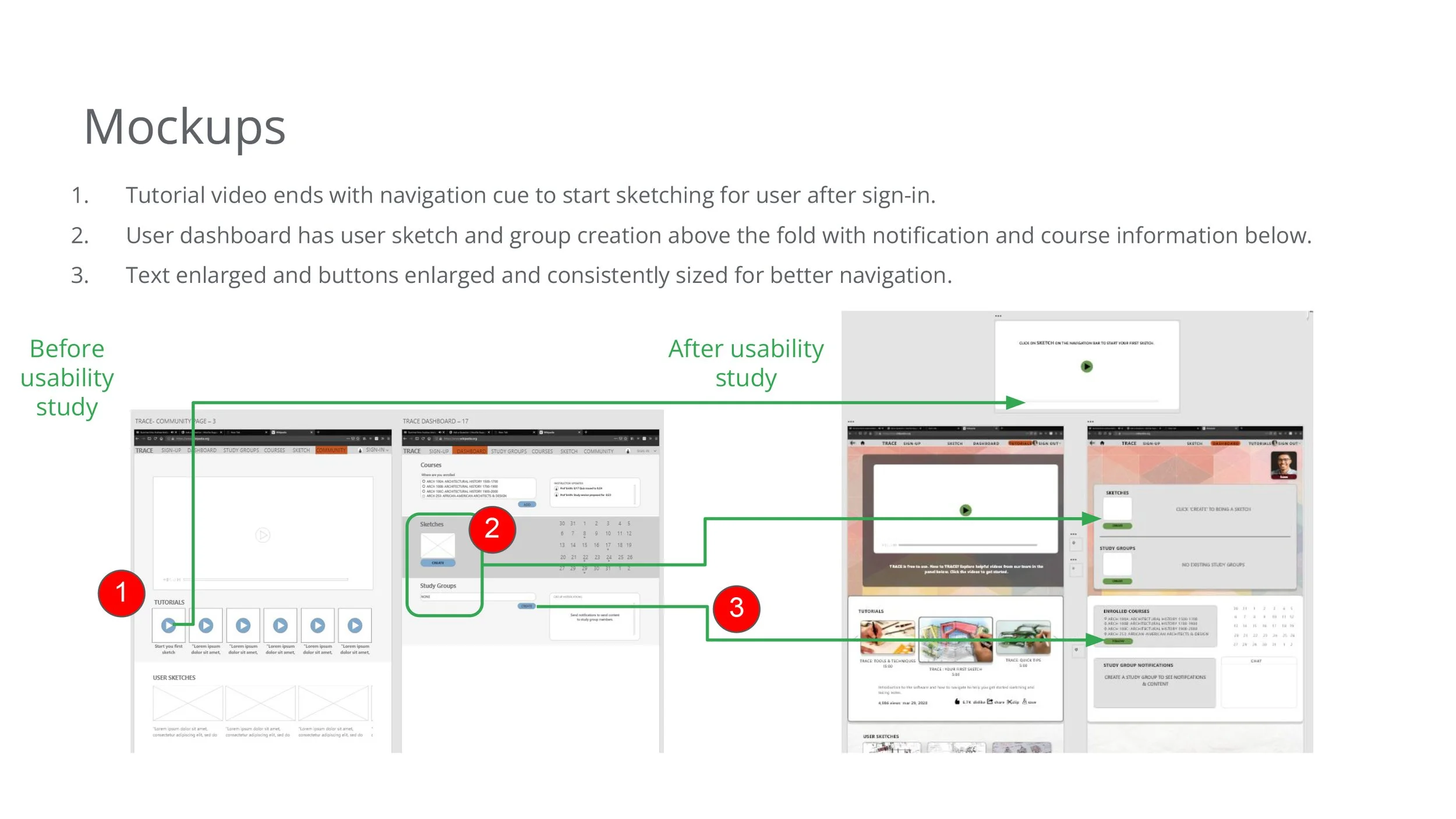 Users like the Dashboard concept to track sketches and classes, but there was no clear navigation path for a users initial exploration.