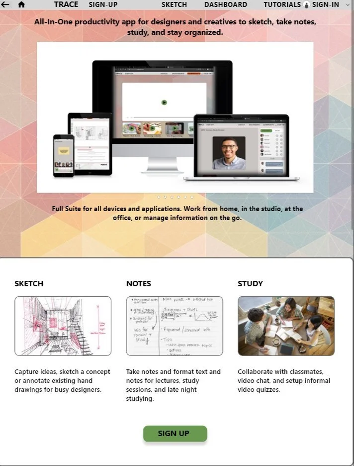 User feedback help to simplify Desktop homepage and only provide the essentials to (1) sign-up, add classes, create drawings, develop study groups, and allow video conferencing with digital flashcards.